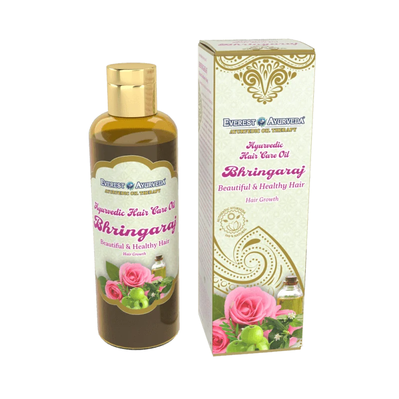 Tradiční ájurvédský olej Bhringaraj, známý jako „vládce vlasů“, působí jako tonikum či „rasájana“ na regeneraci vlasů. Pravidelné olejování a masáž pokožky hlavy neboli „murdha taila“ zlepšuje prokrvení vlasových kořínků, a tím posiluje růst vlasů. Hlava je sídlem mozku, nervového centra a smyslových orgánů. Proto péče o pokožku hlavy přináší také uvolnění psychického napětí, rozrušení a stresu. V případě akutní tenze v oblasti hlavy aplikujte několik kapek oleje do nosních dírek.